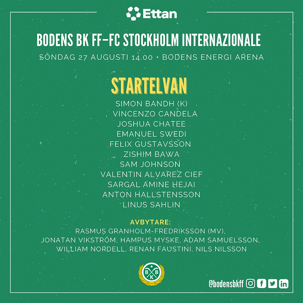 Dagens startelva i hemmamatchen mot FC Stockholm Internazionale.