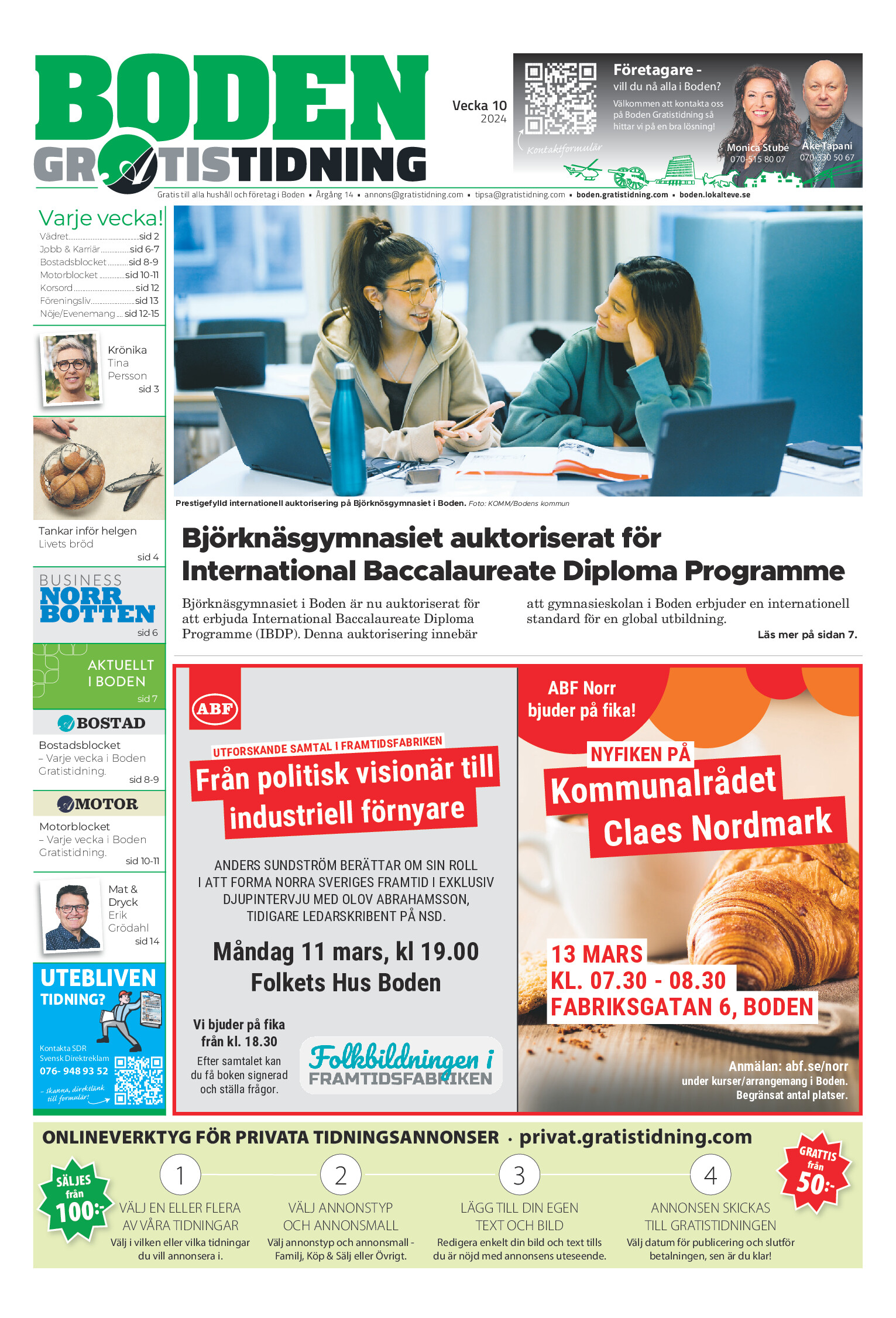 Hem E-tidning Boden Gratistidning (vecka 10, 2024) E-tidning Boden Gratistidning (vecka 10, 2024) Av redaktionboden - 2024-03-06 Klicka här! om inte E-tidningen visas nedan. RELATERADE ARTIKLARMER FRÅN SKRIBENTEN E-tidning Boden Gratistidning (vecka 16, 2026) E-tidning Boden Gratistidning (vecka 15, 2026) E-tidning Boden Gratistidning (vecka 14, 2026)
