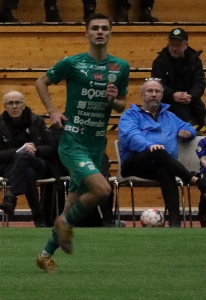 Jack Nilsson gjorde en bra match mot OLS,Uleåborg och ligger bra till för högerbacksplatsen i den kommande premiären mot Gottne på skärtorsdagen, Bodens Energi Arena. Foto: Stefan Gustafsson( arkivfoto)