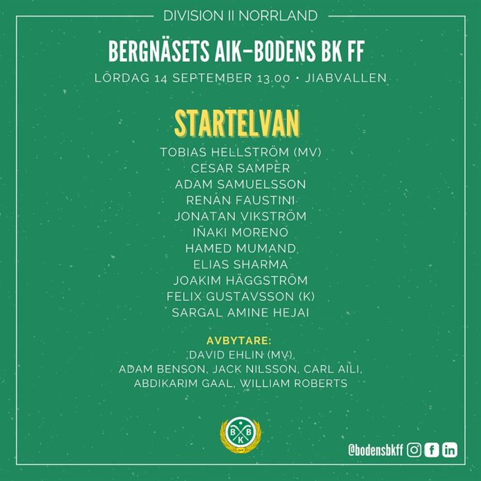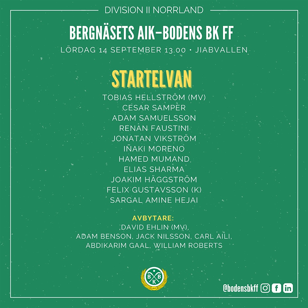 Dagens startelva i bortamatchen mot Bergnäsets AIK.