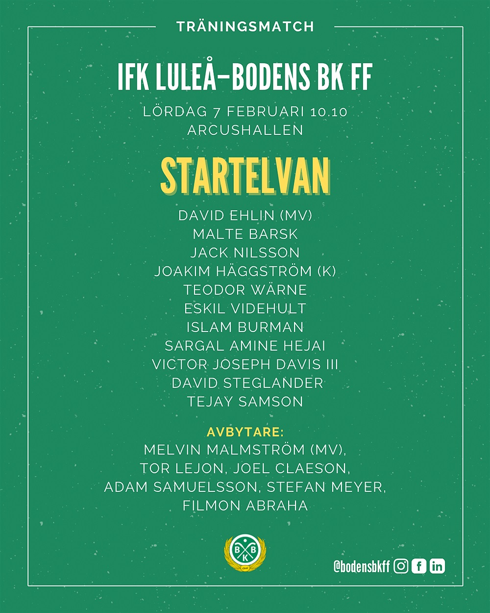 Dagens startelva i träningsmatchen mot IFK Luleå.
