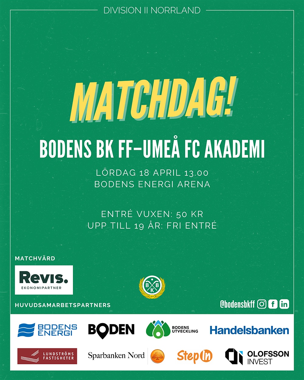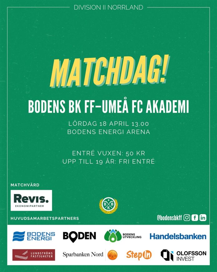 Bodens Energi Arena lördagen den 18 april kl 13.00