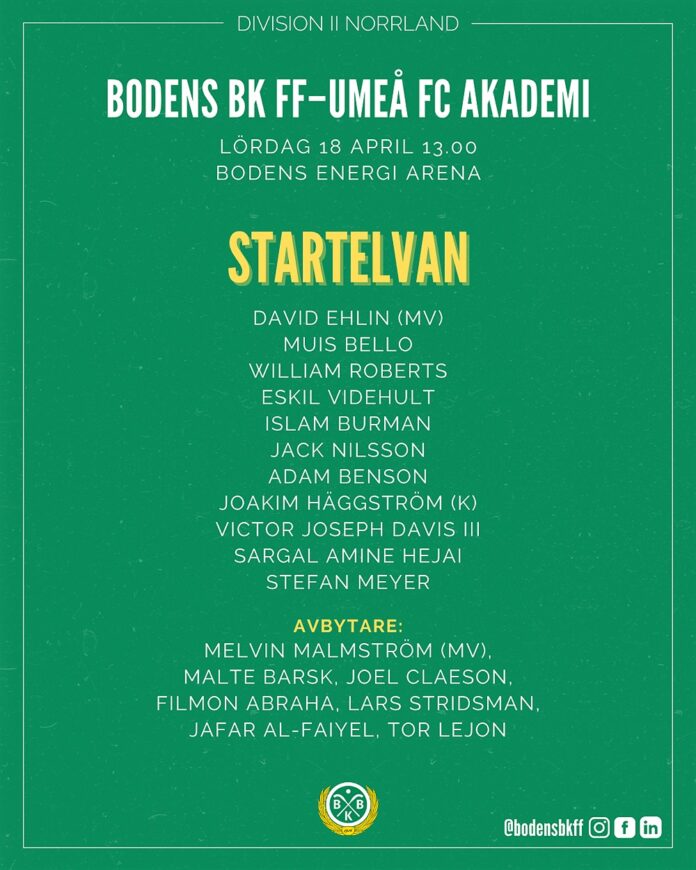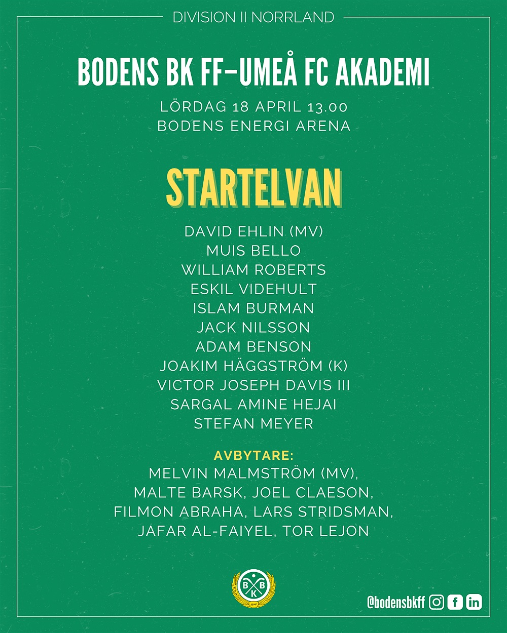 Dagens startelva i hemmamatchen mot Umeå FC Akademi.