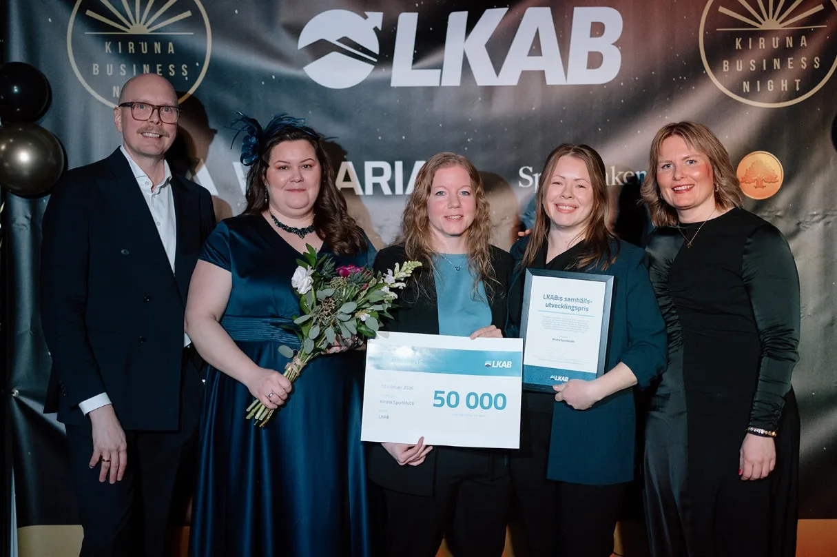 Under fredagens näringslivsgala, Kiruna Business Night, stod både det lokala näringslivet och föreningslivet i centrum. Som platinumsponsor var vi på plats för att dela ut vårt Samhälls- och utvecklingspris – en utmärkelse som i år tilldelades Kiruna Sportklubb och belönades med 50 000 kronor.