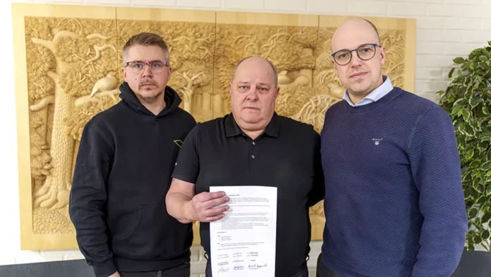 Från vänster i bild: Stefan Kostenniemi (S), Gällivare kommun, Jari Törmänen, Dundrets fritidsby samfällighetsförening och Henrik Lyngmark, LKAB.