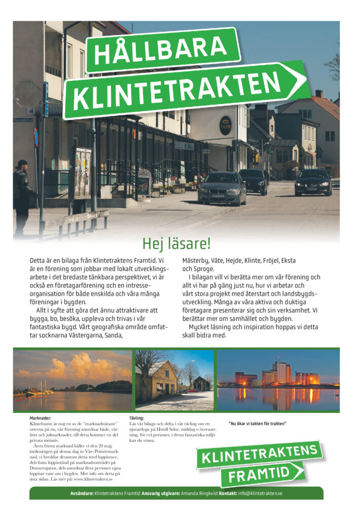 E-tidning- Bilaga Bilaga Gotland Gratistidning – Klintetraktens Framtid (vecka 20, 2023) Av redaktiongotland - 2023-05-18 FacebookTwitterPinterestWhatsApp Klicka här! om inte E-tidningen visas nedan.