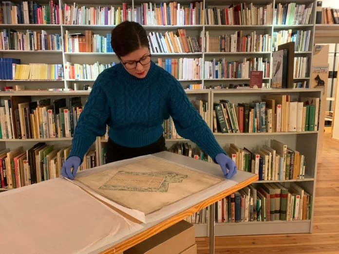 Arkivarie Tove Åkesson på Gotlands Museum. Pressbild: Gotlands Museum