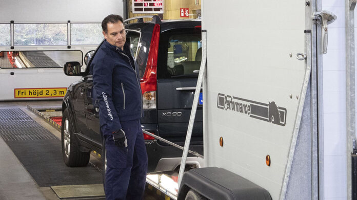 Hästtransport släpvagn besiktigas på Bilprovningen. Foto: Bilprovningen