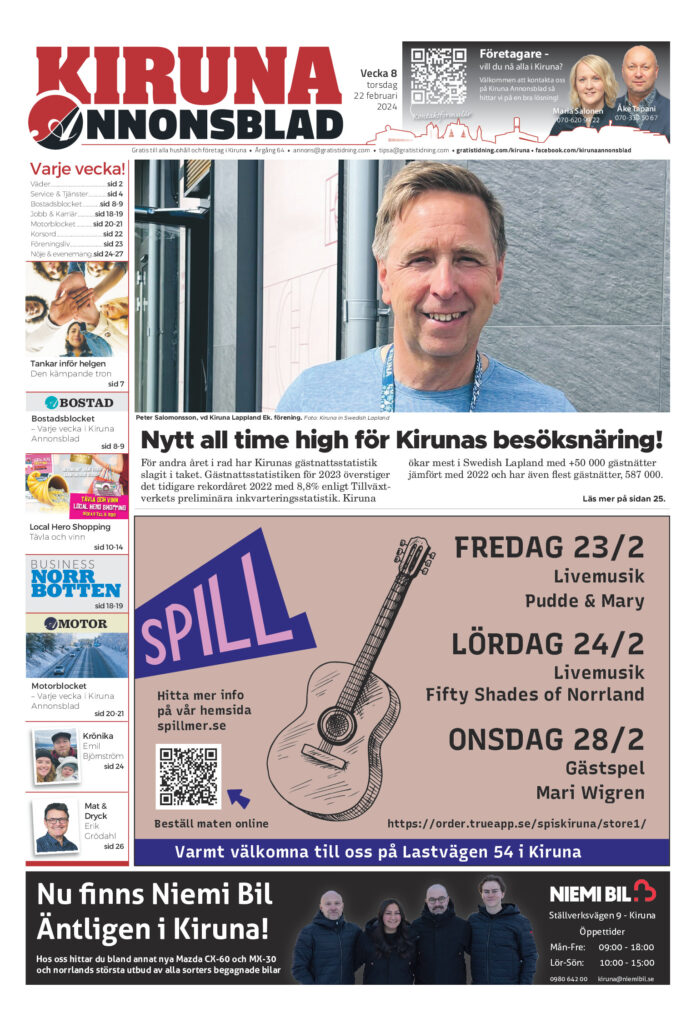 Hem E-tidning Kiruna Annonsblad (vecka 8, 2024) E-tidning Kiruna Annonsblad (vecka 8, 2024) Av redaktionkiruna - 2024-02-21 Klicka här! om inte E-tidningen visas nedan. RELATERADE ARTIKLARMER FRÅN SKRIBENTEN E-tidning Kiruna Annonsblad (vecka 16, 2026) E-tidning Kiruna Annonsblad (vecka 15, 2026) E-tidning Kiruna Annonsblad (vecka 14, 2026)