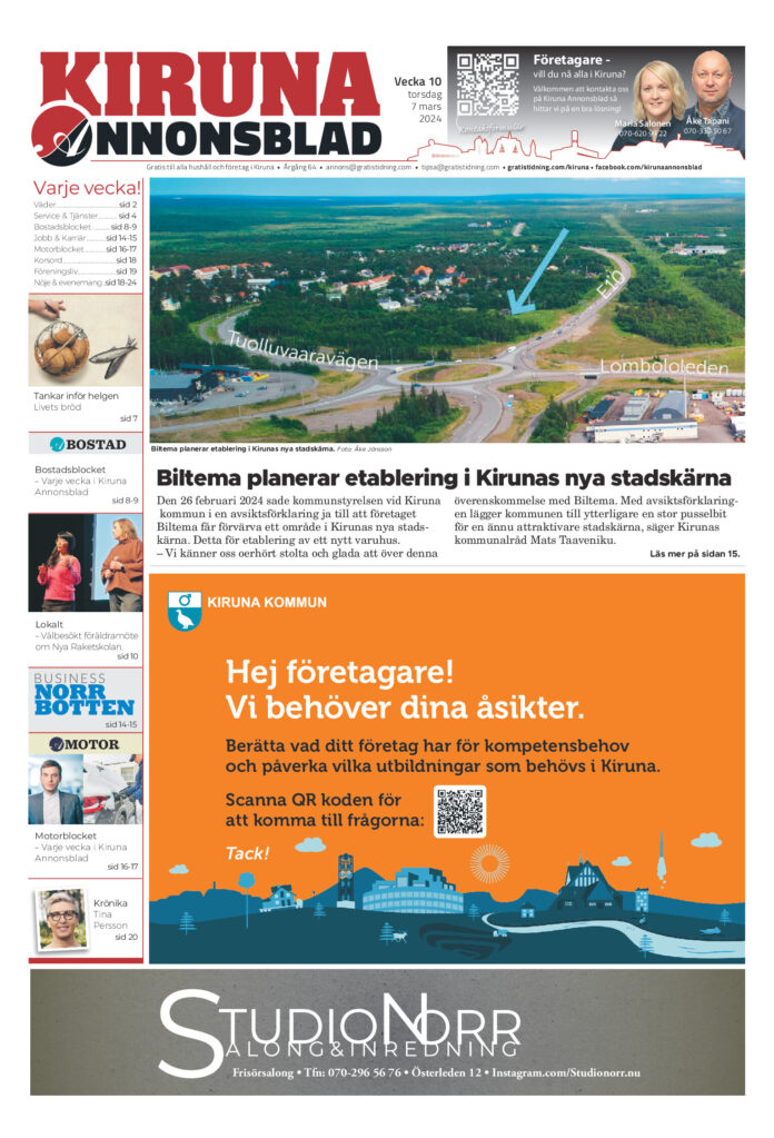 Hem E-tidning Kiruna Annonsblad (vecka 10, 2024) E-tidning Kiruna Annonsblad (vecka 10, 2024) Av redaktionkiruna - 2024-03-06 Klicka här! om inte E-tidningen visas nedan. RELATERADE ARTIKLARMER FRÅN SKRIBENTEN E-tidning Kiruna Annonsblad (vecka 16, 2026) E-tidning Kiruna Annonsblad (vecka 15, 2026) E-tidning Kiruna Annonsblad (vecka 14, 2026)