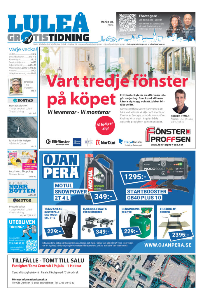 Hem E-tidning Luleå Gratistidning (vecka 4, 2024) E-tidning Luleå Gratistidning (vecka 4, 2024) Av redaktionlulea - 2024-01-23 Klicka här! om inte E-tidningen visas nedan. RELATERADE ARTIKLARMER FRÅN SKRIBENTEN E-tidning Luleå Gratistidning (vecka 16, 2026) E-tidning Luleå Gratistidning (vecka 15, 2026) E-tidning Luleå Gratistidning (vecka 14, 2026)