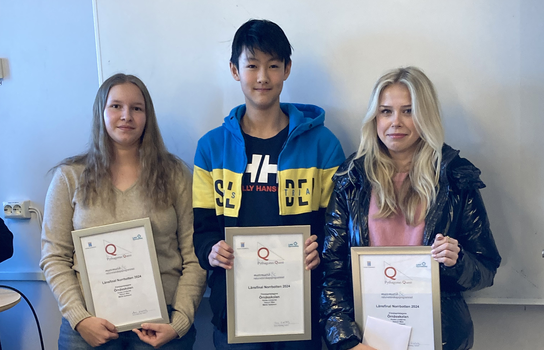 Pythagoras Quest är en rikstäckande tävling i matematik för niondeklassare. Varje år deltar cirka hundra lag från hela landet i tävlingen som består av en kvalificeringsomgång, en distriktsfinal och en riksfinal. I år var det nio lag från Norrbotten som kvalificerade sig till distriktsfinalen som ägde rum den 30 januari på Luleå Gymnasieskola. Segrare i årets distriktsfinal blev laget från Örnnässkolan med Hulda Lindqvist, Haorui Wen och Märta Isaksson. De har därmed kvalificerat sig till riksfinalen i Malmö den 2 juni. På delad andraplats kom Pitholmsskolan och Stadsöskolan. Tävlingen anordnades av Spetsutbildningen inom matematik, naturvetenskapsprogrammet vid Luleå Gymnasieskola.
