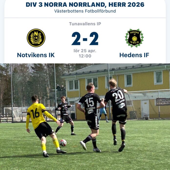 Det hände en hel del i Notasherrarnas hemmapremiär mot Hedens IF där det stod 2-2 på tavlan vid slutsignalen. Detta sedan Notas haft 2-1 i paus och spelat en dryg halvlek med tio man.
