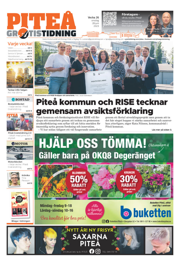 Hem E-tidning Piteå Gratistidning (vecka 26, 2023) E-tidning Piteå Gratistidning (vecka 26, 2023) Av redaktionpitea - 2023-06-28 Klicka här! om inte E-tidningen visas nedan. RELATERADE ARTIKLARMER FRÅN SKRIBENTEN E-tidning Piteå Gratistidning (vecka 17, 2026) E-tidning Piteå Gratistidning (vecka 16, 2026) E-tidning Piteå Gratistidning (vecka 15, 2026)