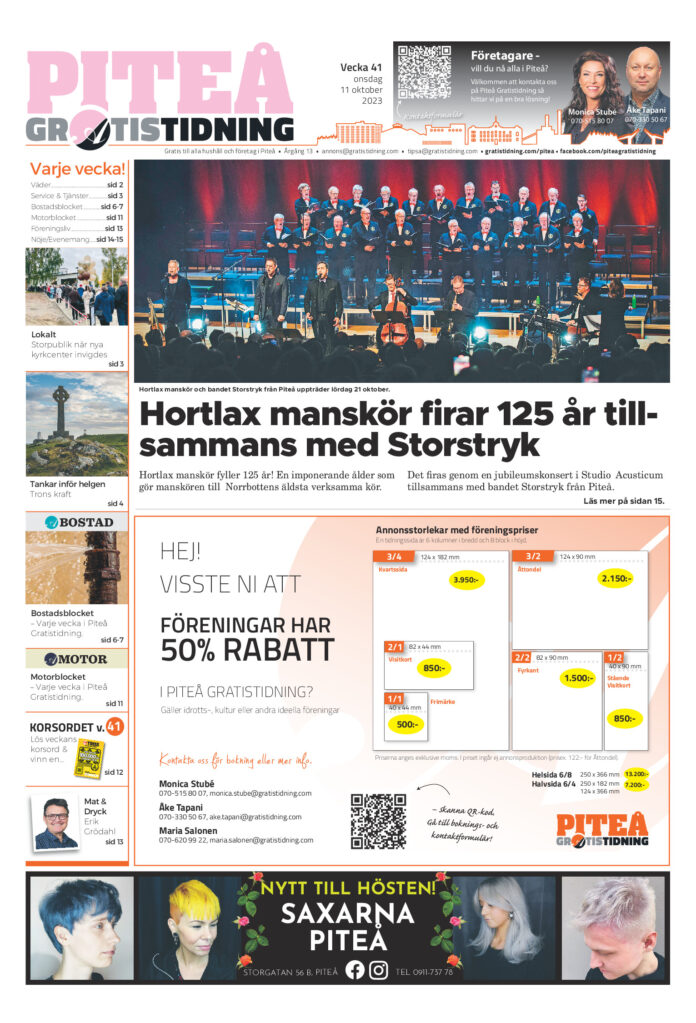 Hem E-tidning Piteå Gratistidning (vecka 41, 2023) E-tidning Piteå Gratistidning (vecka 41, 2023) Av redaktionpitea - 2023-10-11 Klicka här! om inte E-tidningen visas nedan. RELATERADE ARTIKLARMER FRÅN SKRIBENTEN E-tidning Piteå Gratistidning (vecka 17, 2026) E-tidning Piteå Gratistidning (vecka 16, 2026) E-tidning Piteå Gratistidning (vecka 15, 2026)